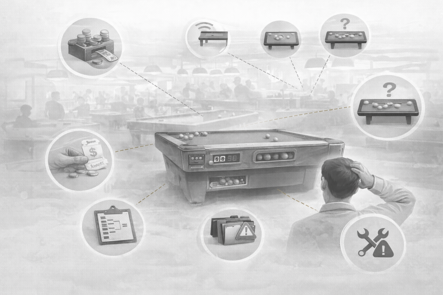 Les salles de billard et lieux de loisirs similaires font souvent face à des pertes de revenus et à des inefficacités opérationnelles. Les systèmes à pièces sont sujets à la fraude et ne donnent pas de visibilité sur l'usage des tables. L'organisation manuelle des tournois et la dépendance à l'honnêteté du personnel créent des risques, tandis que les pannes d'équipement sont sous-déclarées sans reporting centralisé.